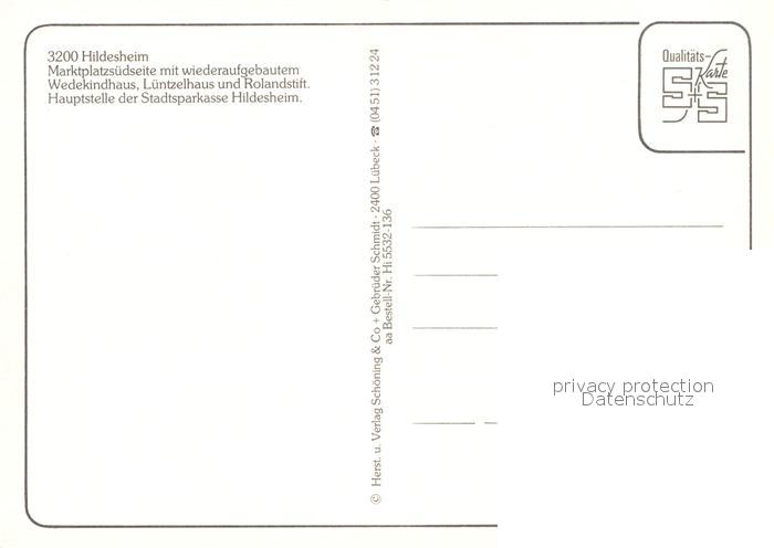 72950998 HILDESHEIM CITY Marktplatz Wedekindhaus Luentzelhaus Rolandstift postalisch nicht gelaufen Erhaltung siehe scans [WerneD78] KatCode: 11110003254021