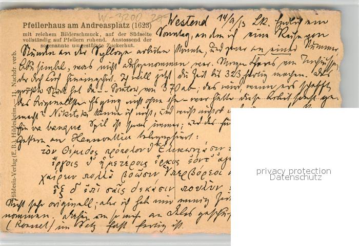 43490406 HILDESHEIM CITY Pfeilerhaus am Andreasplatz postalisch nicht gelaufen Erhaltung siehe scans [KathaD81] Kath Katcode 11110003254021