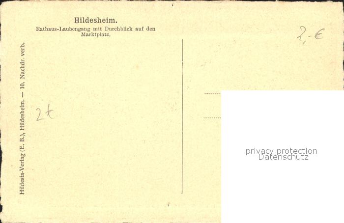 72293419 HILDESHEIM CITY Rathaus Laubengang Markplatz postalisch nicht gelaufen Erhaltung siehe scans KatCode: 11110003254021