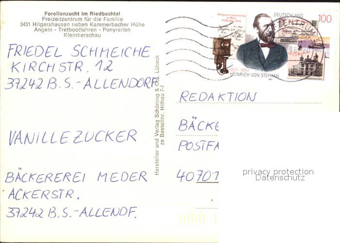 72514393 alte Postkarte Hilgershausen Melsungen Fliegeraufnahme Forellenzucht im Riedbachtal postalisch gelaufen Erhaltung siehe scans KatCode: 11110006634003
