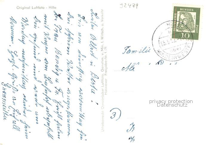 33659432 alte Postkarte Hille Nordrhein-Westfalen Fliegeraufnahme postalisch gelaufen Erhaltung siehe scans [WerneD78] KatCode: 11110005770012
