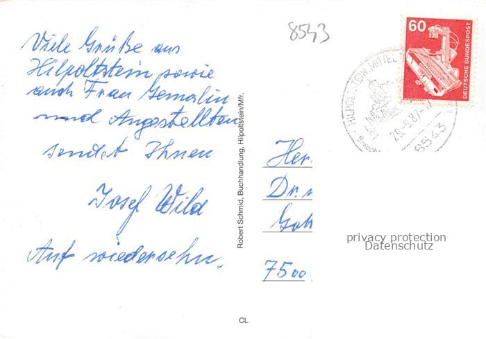 74049928 alte Postkarte Hilpoltstein Mittelfranken Motive Ortszentrum Fachwerkhaus Partie am Wasser postalisch gelaufen Erhaltung siehe scans [FriedD77] KatCode: 11110009576127