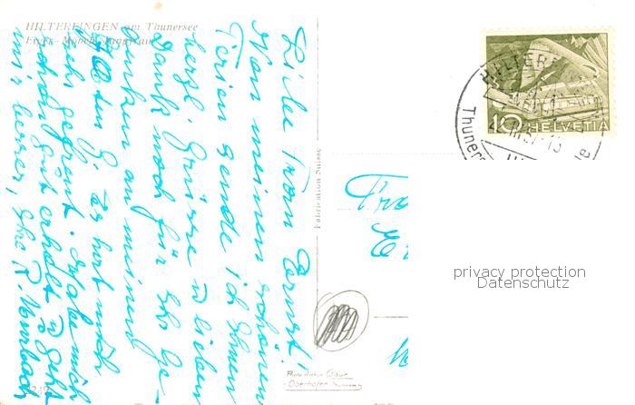 13794666 alte Postkarte Hilterfingen Thunersee BE Gesamtansicht m. Eiger Moench Jungfrau postalisch gelaufen Erhaltung siehe scans [LiesaD40] KatCode: 11470060240764
