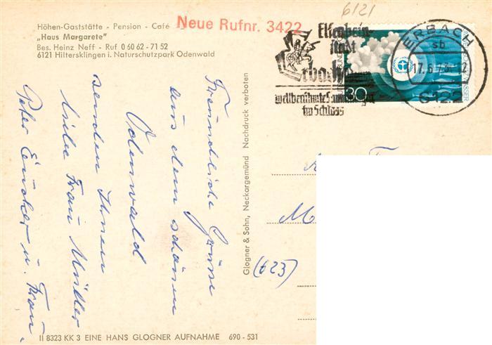 73872290 alte Postkarte Hiltersklingen Hoehengaststaette Pension Haus Margarete Terrasse Panorama postalisch gelaufen Erhaltung siehe scans [FriedD77] KatCode: 11110006437012