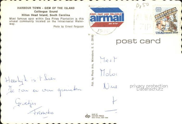 72451648 old postcard Hilton Head Island Harbour Town Fliegeraufnahme postalisch gelaufen Erhaltung siehe scans KatCode: 14140430000000