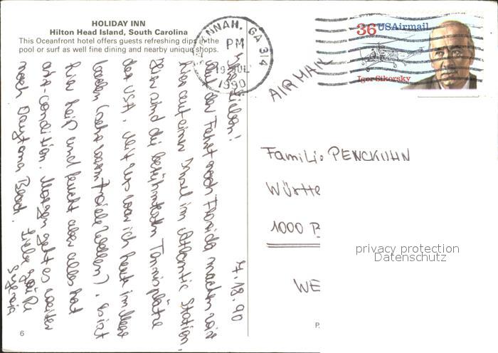 72294709 old postcard Hilton Head Island Holiday Inn postalisch gelaufen Erhaltung siehe scans KatCode: 14140430000000