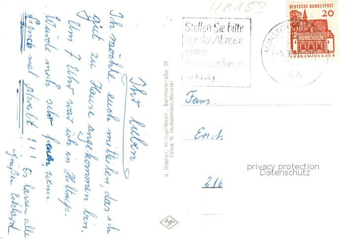 73854882 Hiltrup Muenster Westfalen Polizei Institut Glosuritwerke Steiner See St Clemens Kirche Am Ehrenmal Marienschule Bahnhofstrasse postalisch gelaufen Erhaltung siehe scans [WerneD78] alte Postkarte Wern Katcode 11110005515000