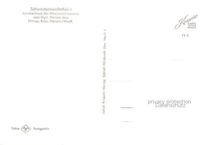 73853120 Hiltrup Muenster Westfalen Schwesternwohnheim Krankenhaus der Missionsschwestern vom hlgst. Herzen Jesu postalisch nicht gelaufen Erhaltung siehe scans [FriedD77] Frie Katcode 11110005515000