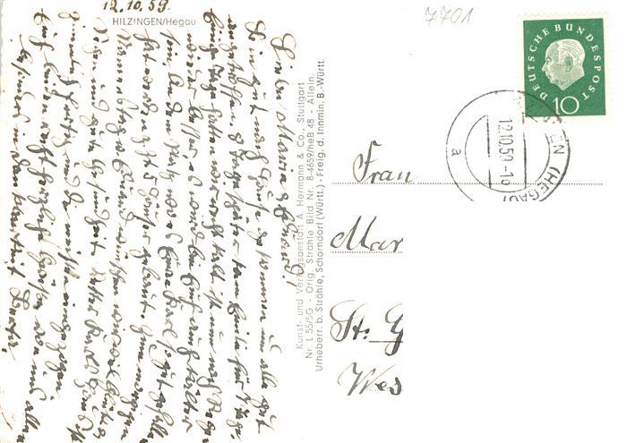 73877935 alte Postkarte Hilzingen Fliegeraufnahme postalisch gelaufen Erhaltung siehe scans [FriedD77] KatCode: 11110008335035