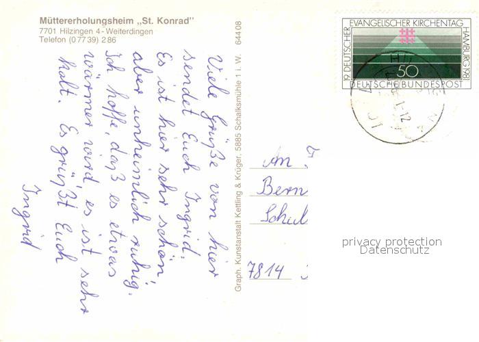 72824913 alte Postkarte Hilzingen Weiterdingen Muettererholungsheim St. Konrad postalisch gelaufen Erhaltung siehe scans [LiesaD40] KatCode: 11110008335035