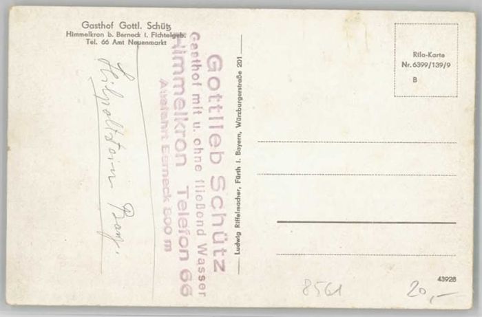 40233814 Himmelkron Gasthof Schütz * 1940 KatCode 11110009477121