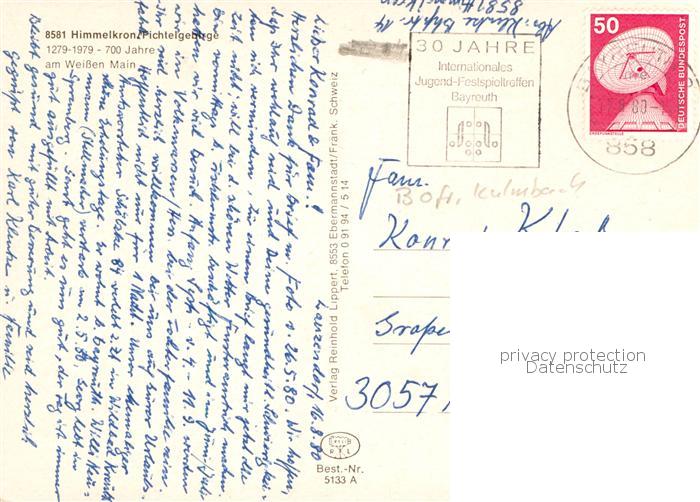 73840050 alte Postkarte Himmelkron Panorama Bruecke am Weissen Main Kirche postalisch gelaufen Erhaltung siehe scans [FriedD77] KatCode: 11110009477121