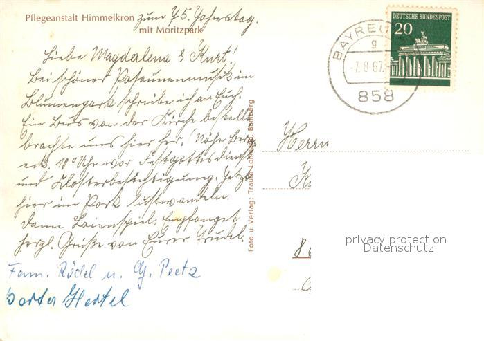 73721805 alte Postkarte Himmelkron Pflegeanstalt Himmelkron Park Brunnen postalisch gelaufen Erhaltung siehe scans [WerneD78] KatCode: 11110009477121