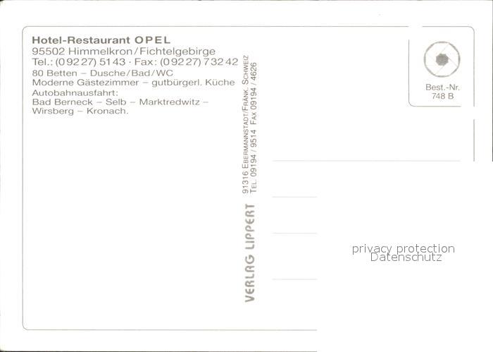 71914229 Himmelkron Rasthaus Hotel Opel postalisch nicht gelaufen Erhaltung siehe scans KatCode: 11110009477121