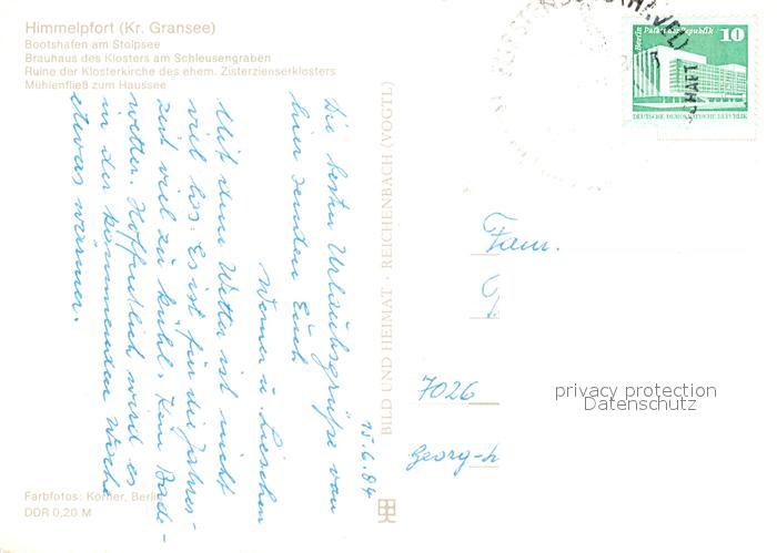 73040849 alte Postkarte Himmelpfort Bootshafen Stolpsee Brauhaus Kloster Schleusengraben Ruine Muehlenfliess zum Haussee postalisch gelaufen Erhaltung siehe scans [FriedD77] KatCode: 11110012065084