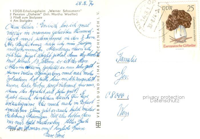 73777600 alte Postkarte Himmelpfort FDGB Erholungsheim Werner Schaumann Pension Dahim Fliess zum Stolpsee postalisch gelaufen Erhaltung siehe scans [FriedD77] KatCode: 11110012065084