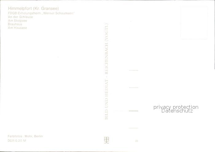 72057264 Himmelpfort FDGB Erholungsheim Werner Schaumann Schleuse Stolpsee Brauhaus Haussee postalisch nicht gelaufen Erhaltung siehe scans KatCode: 11110012065084