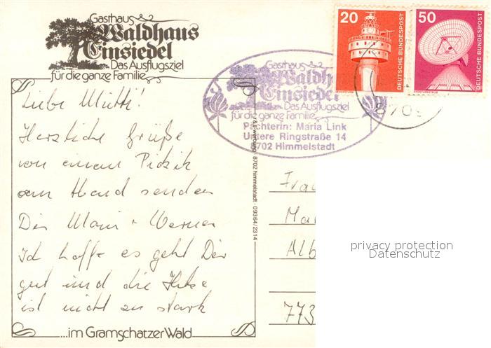 73721806 alte Postkarte Himmelstadt Gasthaus Waldhaus Einsiedel Freiterrasse postalisch gelaufen Erhaltung siehe scans [WerneD78] KatCode: 11110009677142