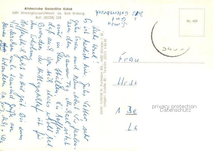 73106338 alte Postkarte Himmighausen Altdeutsche Gaststaette Kukuk postalisch gelaufen Erhaltung siehe scans [KathaD81] KatCode: 11110005762028