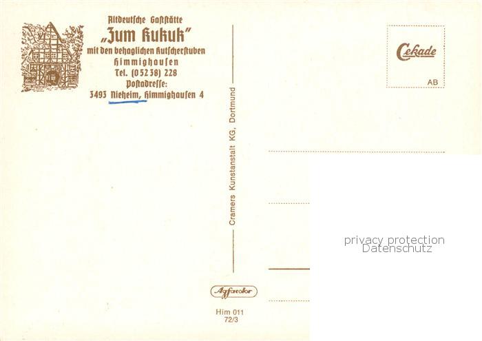 73846083 Himmighausen Altdeutsche Gaststaette Zum Kukuk Kutscherstuben postalisch nicht gelaufen Erhaltung siehe scans [WerneD78] KatCode: 11110005762028