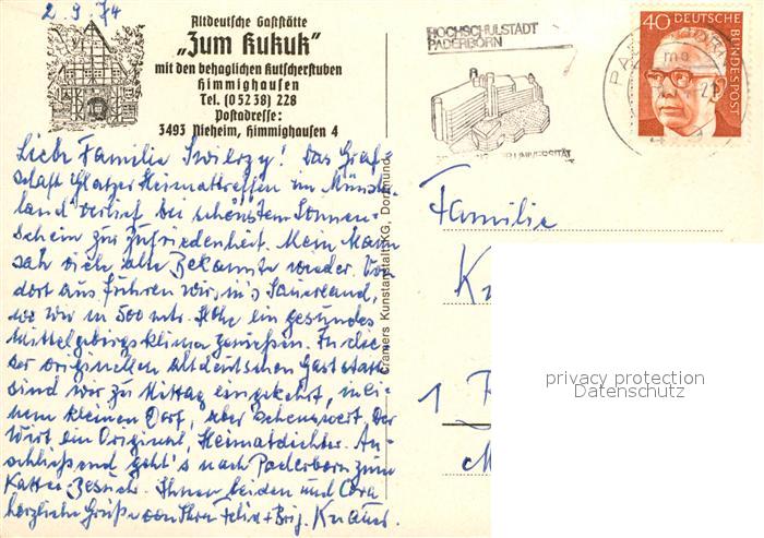 73172877 alte Postkarte Himmighausen Altdeutsches Restaurant Kukuk postalisch gelaufen Erhaltung siehe scans [LiesaD40] KatCode: 11110005762028