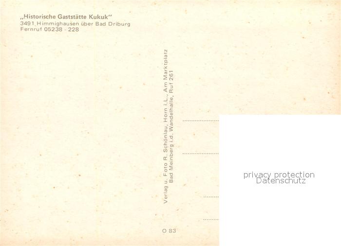 73185241 Himmighausen Historische Gaststaette Kukuk Fachwerk postalisch nicht gelaufen Erhaltung siehe scans [LiesaD40] KatCode: 11110005762028