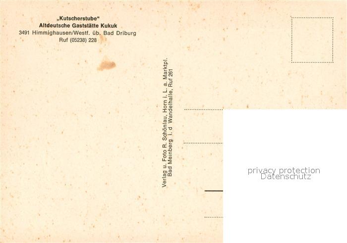 73652394 Himmighausen Kutscherstube Altdeutsche Gaststaette Kukuk postalisch nicht gelaufen Erhaltung siehe scans [FriedD77] KatCode: 11110005762028