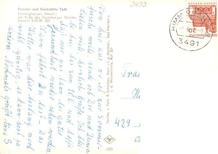 73886423 alte Postkarte Himmighausen Nieheim NRW Pension Gaststaette Todt Gastraeume postalisch gelaufen Erhaltung siehe scans [FriedD77] KatCode: 11110005762028
