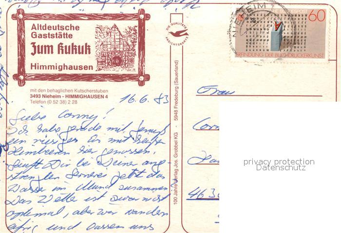 73172874 alte Postkarte Himmighausen Restaurant Zum Kukuk Fachwerkhaus postalisch gelaufen Erhaltung siehe scans [LiesaD40] KatCode: 11110005762028