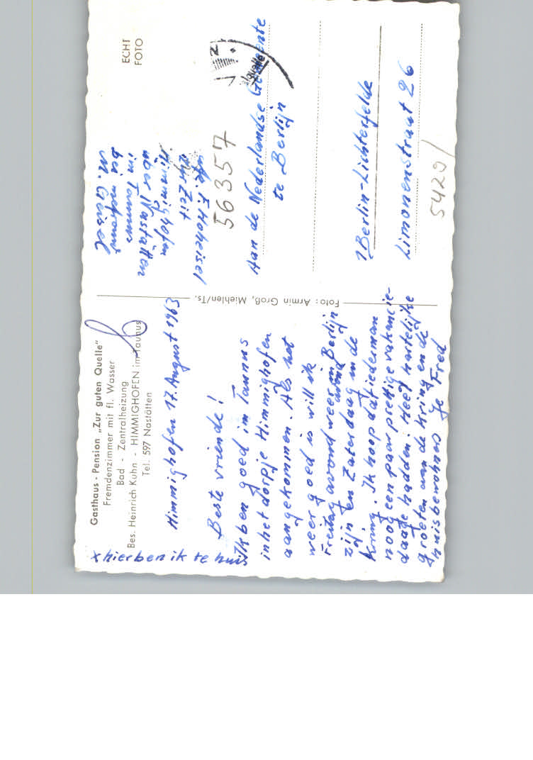 31138568 Himmighofen Gasthaus und Pension Kuhn postalisch nicht gelaufen KatCode: 11110007141055