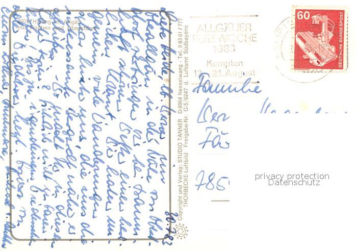 73622546 alte Postkarte Hinang mit Fischen und Oberstdorf postalisch gelaufen Erhaltung siehe scans [WerneD78] KatCode: 11110009780139