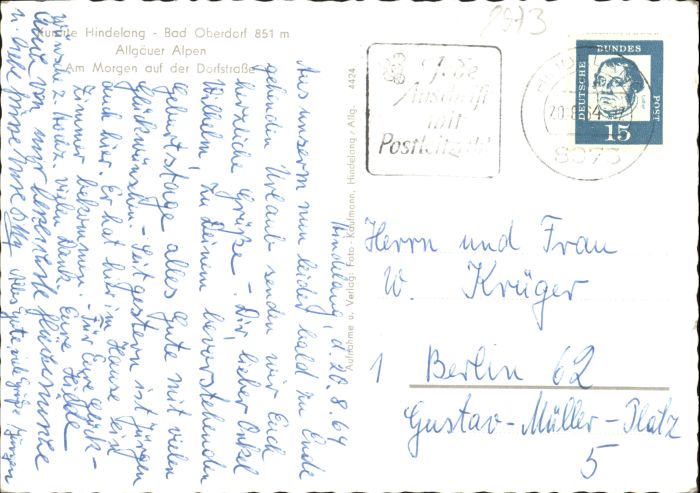 30726914 alte Postkarte Hindelang postalisch gelaufen KatCode: 11110009780123