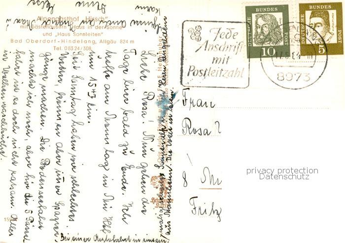 73803477 alte Postkarte Hindelang Alpengasthof Hirsch Gaststube postalisch gelaufen Erhaltung siehe scans [WerneD78] KatCode: 11110009780123