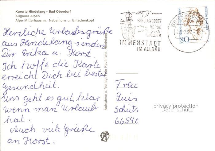 72142742 alte Postkarte Hindelang Bad Alpe Mitterhaus mit Nebelhorn postalisch gelaufen Erhaltung siehe scans KatCode: 11110009780123