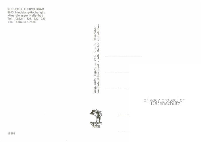 72790660 Hindelang Bad Kurhotel Luitpoldbad postalisch nicht gelaufen Erhaltung siehe scans [LiesaD40] KatCode: 11110009780123