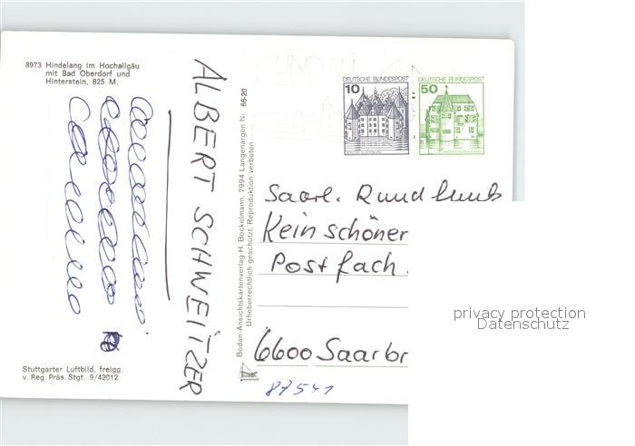 72182818 alte Postkarte Hindelang Bad Obersdorf Hinterstein postalisch gelaufen Erhaltung siehe scans KatCode: 11110009780123