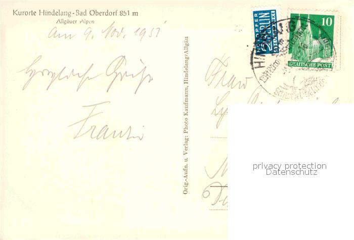 72776484 alte Postkarte Hindelang Bad Panorama Kirche postalisch gelaufen Erhaltung siehe scans [KathaD81] KatCode: 11110009780123