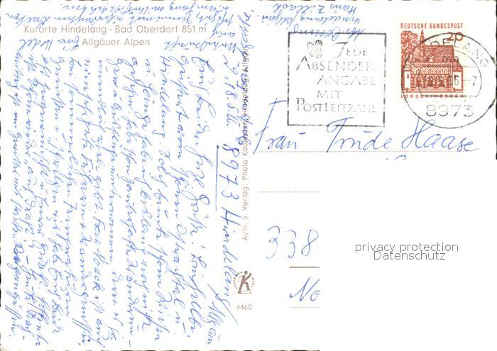 72315283 alte Postkarte Hindelang Bad Teilansicht postalisch gelaufen Erhaltung siehe scans KatCode: 11110009780123