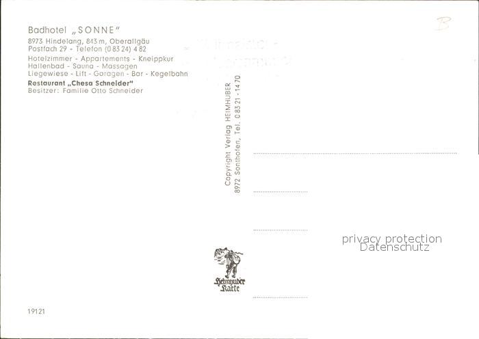 72030256 Hindelang Badhotel Sonne postalisch nicht gelaufen Erhaltung siehe scans KatCode: 11110009780123