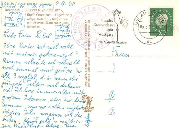 73881607 alte Postkarte Hindelang Bergcafe Iselerplatz postalisch gelaufen Erhaltung siehe scans [WerneD78] KatCode: 11110009780123
