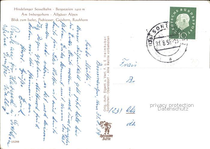 72610417 alte Postkarte Hindelang Bergstation postalisch gelaufen Erhaltung siehe scans [AndreD76] KatCode: 11110009780123