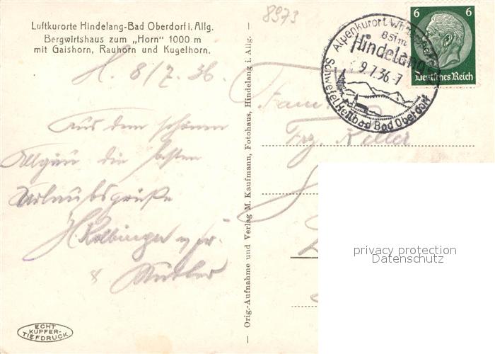 42964161 alte Postkarte Hindelang Bergwirtshaus zum Horn postalisch gelaufen Erhaltung siehe scans [AndreD76] KatCode: 11110009780123