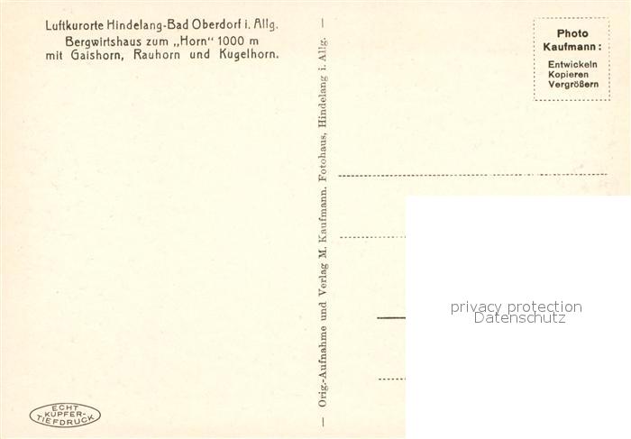 42964170 Hindelang Bergwirtshaus zum Horn postalisch nicht gelaufen Erhaltung siehe scans [AndreD76] KatCode: 11110009780123