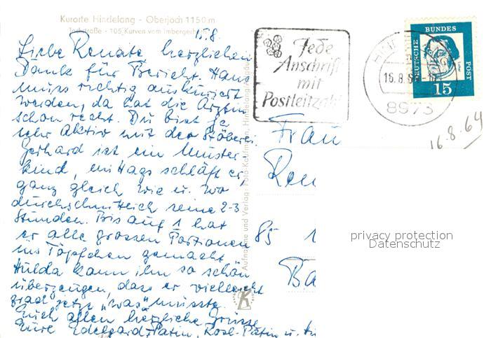 73142246 alte Postkarte Hindelang Fliegeraufnahme mit Oberjoch postalisch gelaufen Erhaltung siehe scans [WerneD78] KatCode: 11110009780123