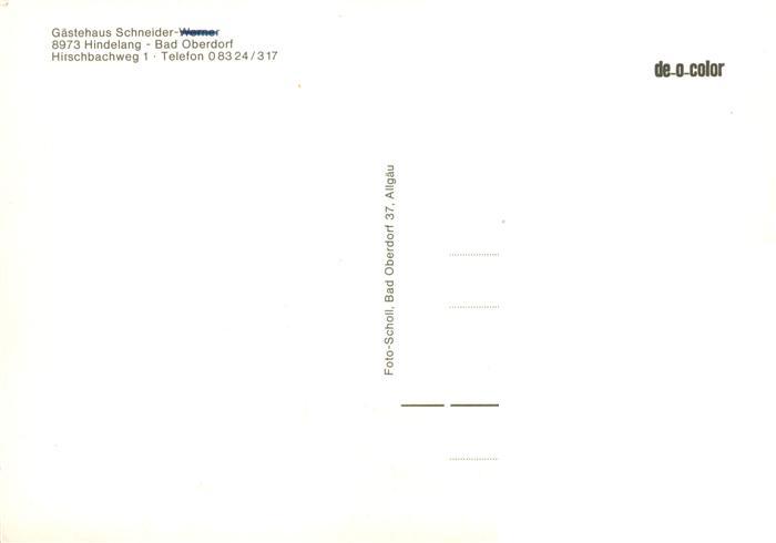 73901355 Hindelang Gaestehaus Schneider postalisch nicht gelaufen Erhaltung siehe scans [WerneD78] KatCode: 11110009780123