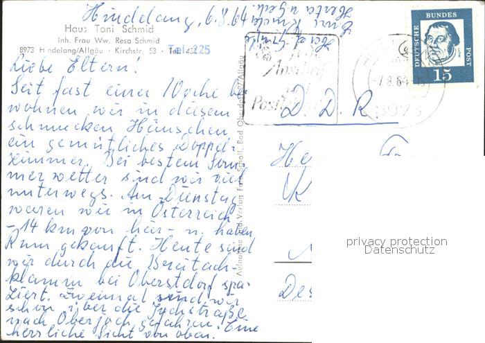 72104698 alte Postkarte Hindelang Haus Toni Schmid postalisch gelaufen Erhaltung siehe scans KatCode: 11110009780123