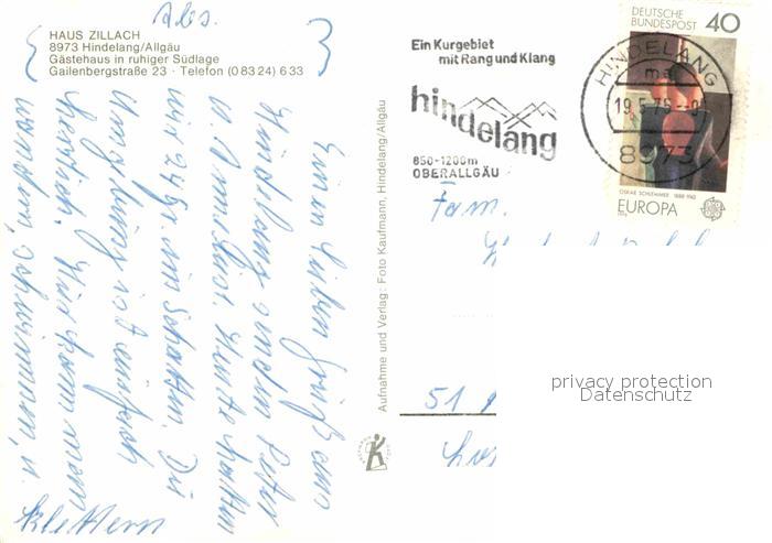 72673790 Hindelang Haus Zillach postalisch nicht gelaufen Erhaltung siehe scans [AndreD76] KatCode: 11110009780123