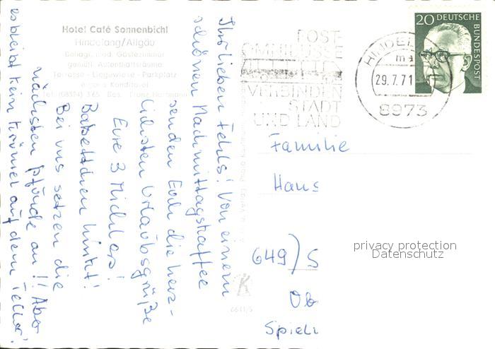 72072524 alte Postkarte Hindelang Hotel Cafe Sonnenbichl postalisch gelaufen Erhaltung siehe scans KatCode: 11110009780123