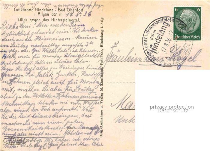 32712266 alte Postkarte Hindelang Kirche Panorama postalisch gelaufen Erhaltung siehe scans [AndreD76] KatCode: 11110009780123