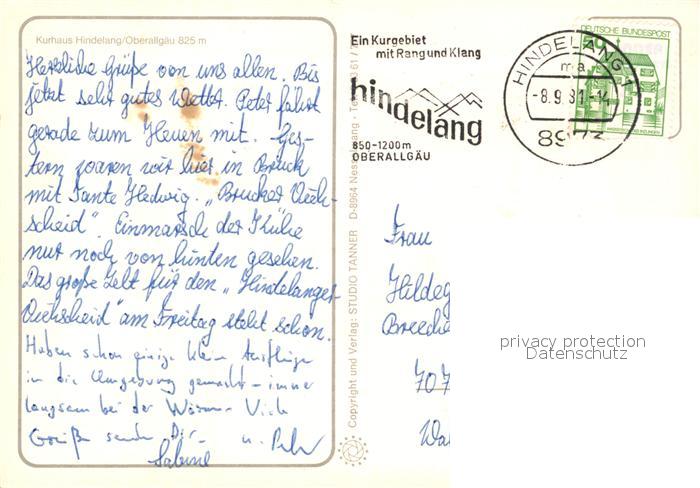 73106640 alte Postkarte Hindelang Kurhaus postalisch gelaufen Erhaltung siehe scans [NatalD47] KatCode: 11110009780123